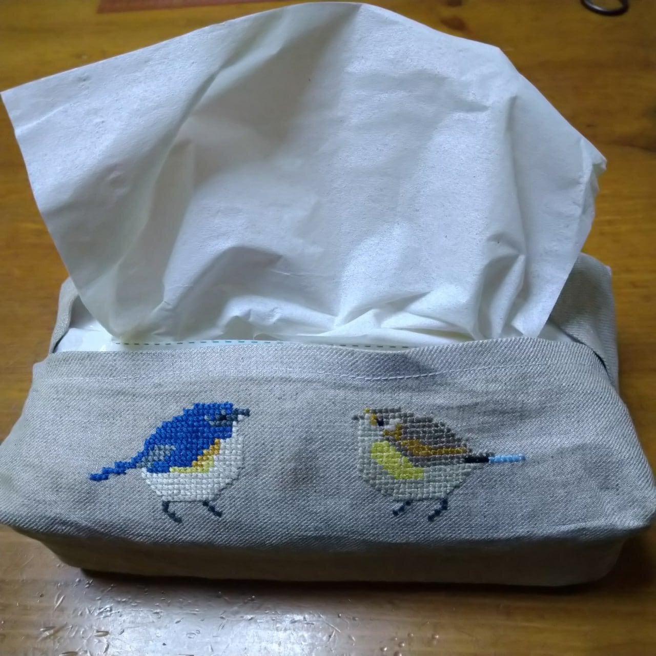 ♪手刺繍箱無しティッシュケース♪(ルリビタキペア)
